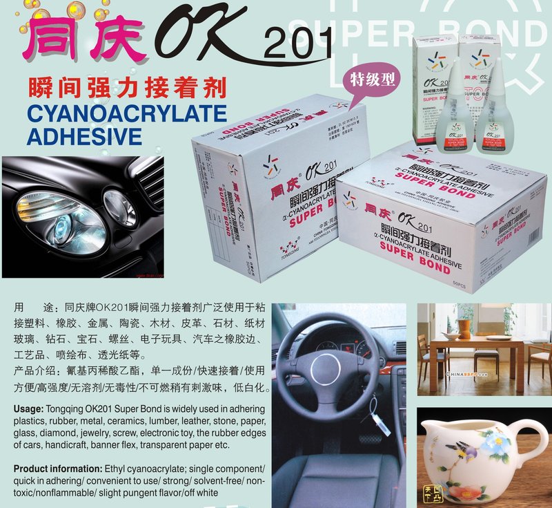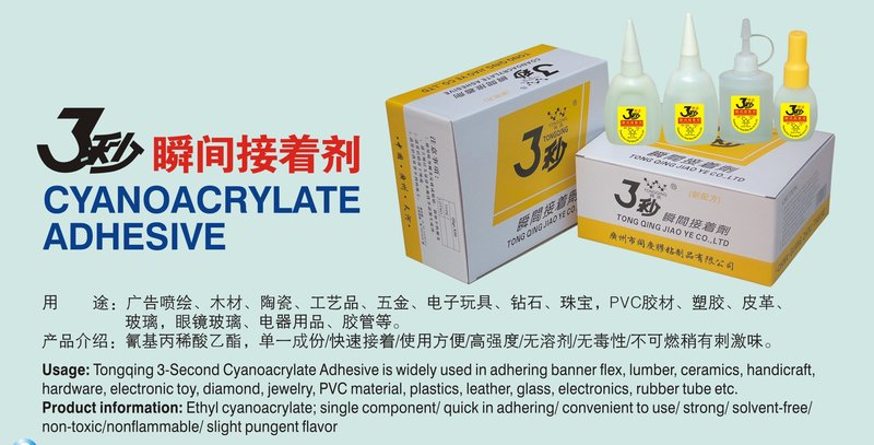 主要品種有:1、丙烯酸酯膠(瞬間膠) 502、AA超能膠、OK201、三秒、101修鞋膠、冬膠王、精品三秒等。2、電子工業類用膠系列:特種膠粘劑(UV無影膠、有機玻璃(壓克力)新一代粘合劑、有機玻璃粘合劑、ABS塑 料膠等)。3、環氧AB膠、厭氧膠、改性丙烯酸酯膠(AB-302)、 青紅膠、噴膠、水晶滴膠等。除以上產品,本公司還有特殊材質,如要求的高技術產品,只要您把需粘接的材質寄予本公司,我公司技術部三天內便可回復解決結果。誠信經營是我們永遠不變的宗旨,精益求精是我們一貫的追求,我們希望能以優質的產品質量,優惠的價格,完善的服務,來滿足各界用戶的需求!